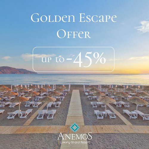 Η γοητεία του Anemos Luxury Grand Resort μπορεί να σας μεταφέρει στο μαγικό κόσμο της ευεξίας. Σε συνδυασμό με το υγρό στοιχείο που επικρατεί στην περιοχή, το κέντρο ευεξίας και SPA «ΑΥΡΑ» το θέρετρο αποτελεί τον ιδανικό συνδυασμό ευεξίας και πολυτελών διακοπών στα Χανιά.